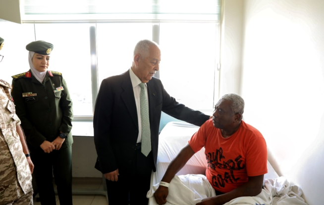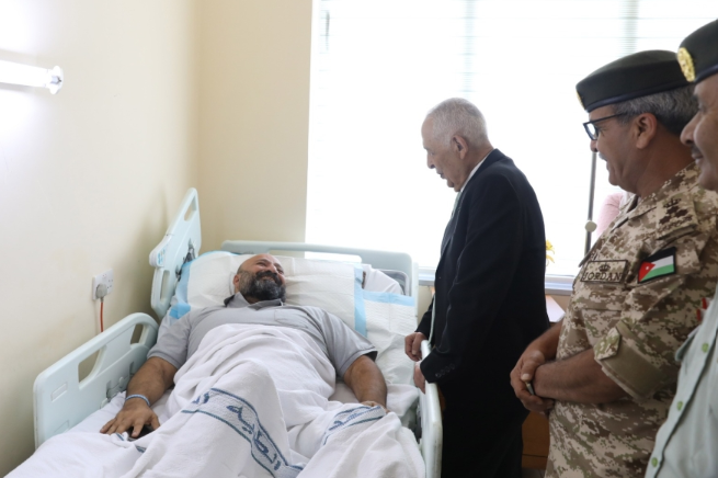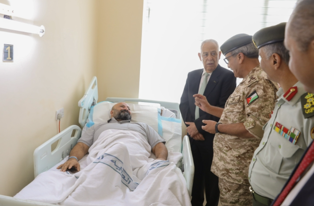 كما زار العيسوي المواطن وصفي نمر الفريحات، الذي نُقل للعلاج في الخدمات الطبية الملكية بتوجيهات ملكية سامية، بعد تعرضه لكسر في قدمه، ناقلاً لهما تمنيات جلالة الملك عبدالله الثاني وسمو الأمير الحسين بن عبدالله الثاني، ولي العهد، بموفور الصحة والعافية والشفاء العاجل.