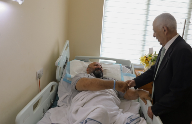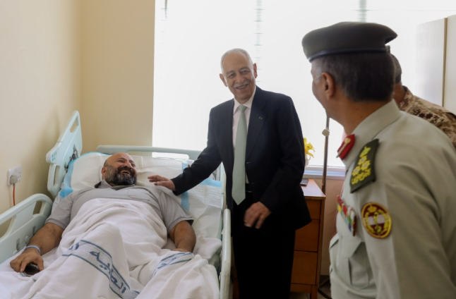 تنفيذاً للتوجيهات الملكية السامية، اطمأن رئيس الديوان الملكي الهاشمي يوسف حسن العيسوي، اليوم الاثنين، على الحالة الصحية للبطل البارالمبي العالمي الكابتن معتز الجنيدي، بطل العالم في رفع الاثقال، الذي يرقد على سرير الشفاء في المدينة الطبية إثر تعرضه لكسر في مفصل الحوض خلال معسكر تدريبي في مملكة البحرين، ضمن استعداداته للمشاركة في بطولة العالم لرفع الأثقال.