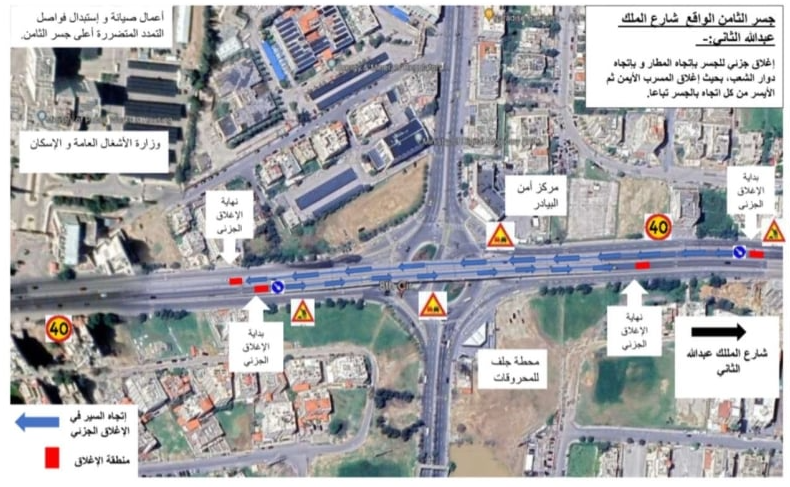 وبيّنت الوزارة أن هذه الأعمال تأتي استكمالًا لمشروع متكامل لصيانة الجسور الحيوية في العاصمة، حيث سبق الانتهاء من تأهيل جسور: الفردوس في مرج الحمام، ومادبا، والقسطل، ومدخل مطار الملكة علياء الدولي، ليكون جسر الثامن آخر المحطات ضمن هذه الحزمة.