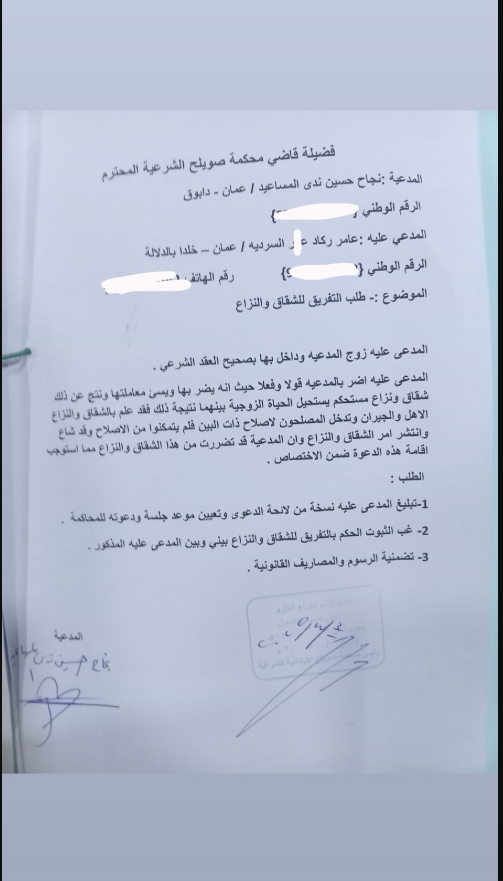 وحصلت الجهات الإعلامية على وثائق رسمية تتضمن تفاصيل الدعوى التي تحمل الرقم 2025/1135، والتي تبين أن المساعيد كانت الطرف المبادر في طلب التفريق، وسط خلافات أسرية تم التطرق إليها خلال جلسات المحكمة.