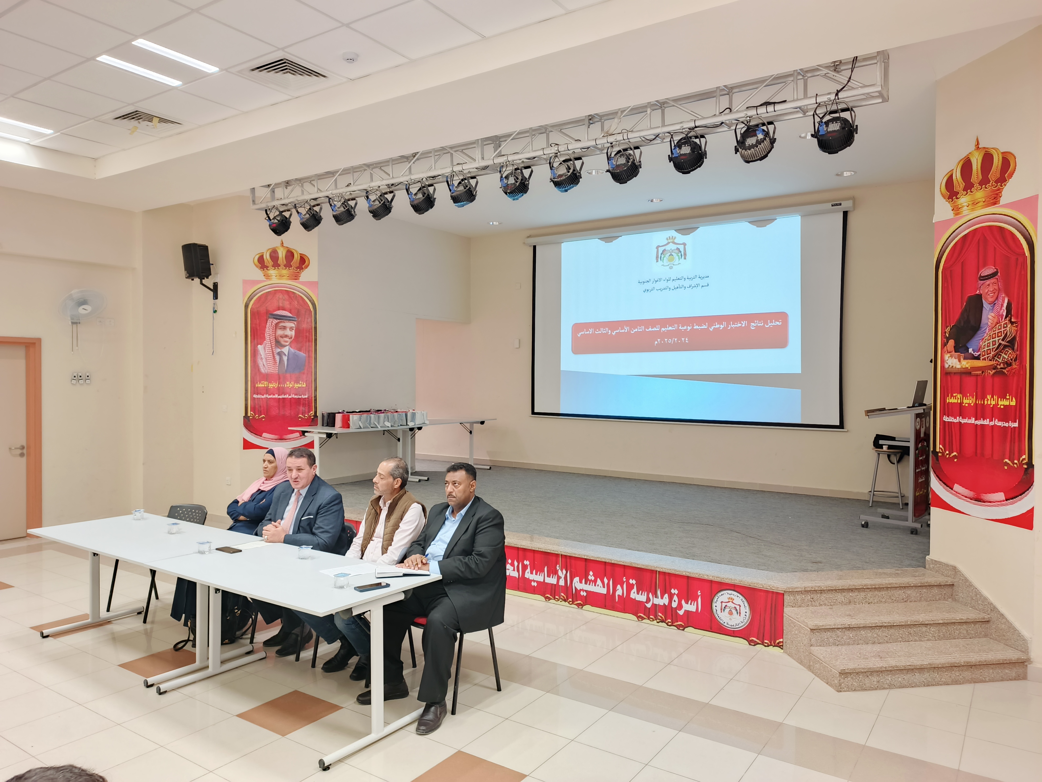 وقدم المشرف التربوي الأستاذ ياسر الشمالات تحليلاً مفصلاً للنتائج، مبيناً أبرز نقاط القوة في تحصيل الطلبة ومجالات التحسين التي تحتاج إلى تعزيز الدعم والإرشاد التربوي، مع التركيز على استراتيجيات التطوير المناسبة لكل مدرسة لضمان رفع مستوى الأداء العام.