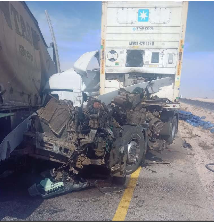 أدى حادث تصادم بين مركبتين (شحن) ظهر اليوم على الطريق الصحراوي باتجاه الجنوب إلى إغلاق مؤقت لحركة السير.