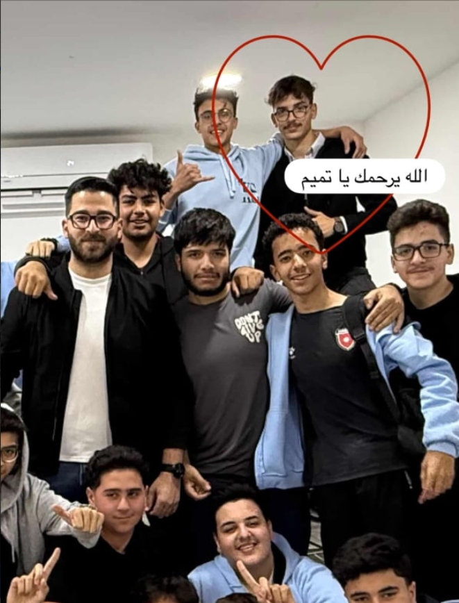وكتب الأستاذ محمود بني عطا في وداعه : "الأسبوع الماضي كنت بيناتنا يا تميم ونتصور ومبسوطين، واليوم رايح تلاقي وجه ربك... أشهد لله أنك من أكثر الطلاب خلقًا درستهم في حياتي... لقاؤنا في الجنة بإذن الله يا حبيب القلب، ربنا يرحمك."