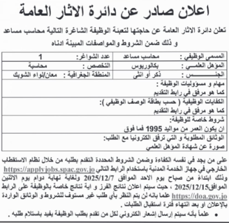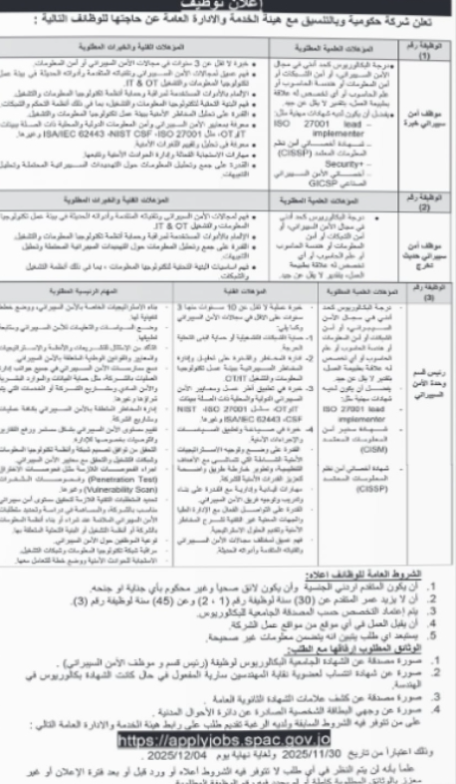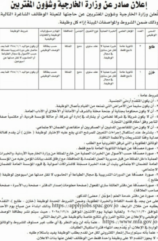 أعلنت مؤسسات حكومية اليوم الأحد، عن وظائف شاغرة ضمن شروط محددة.