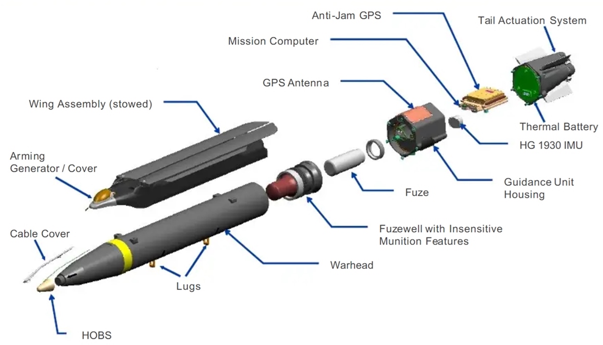كما تعتمد القنبلة على نظام تحديد المواقع العالمي (GPS) ونظام التوجيه بالقصور الذاتي، ما يتيح دقة إصابة تصل إلى متر واحد عند الاصطدام، ويقلل الحاجة إلى إطلاق ذخائر إضافية ويحد من الأضرار الجانبية والتكلفة المالية. وقد دخلت الخدمة لأول مرة عام 2006، وتم تطويرها لتناسب الطائرات الحديثة مثل F‑35 التي تستطيع حمل ثماني قنابل داخل حجرة الأسلحة مع الحفاظ على صعوبة اكتشافها.