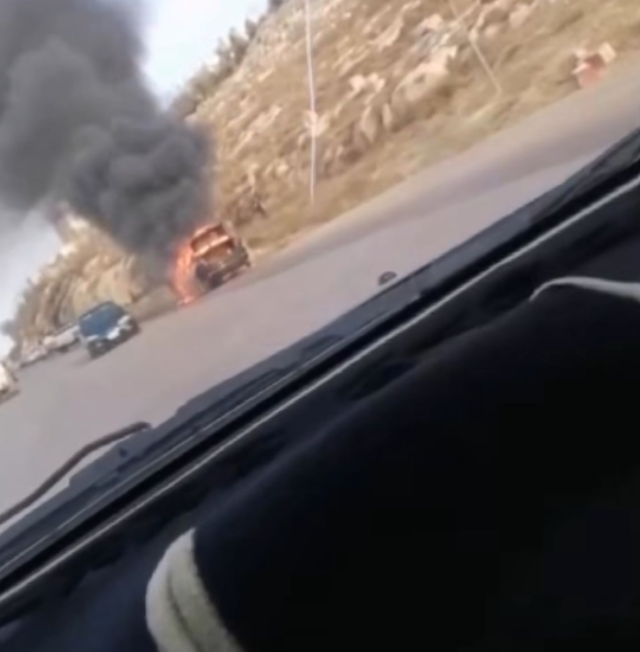احترقت مركبة، مساء اليوم، على طريق ياجوز .