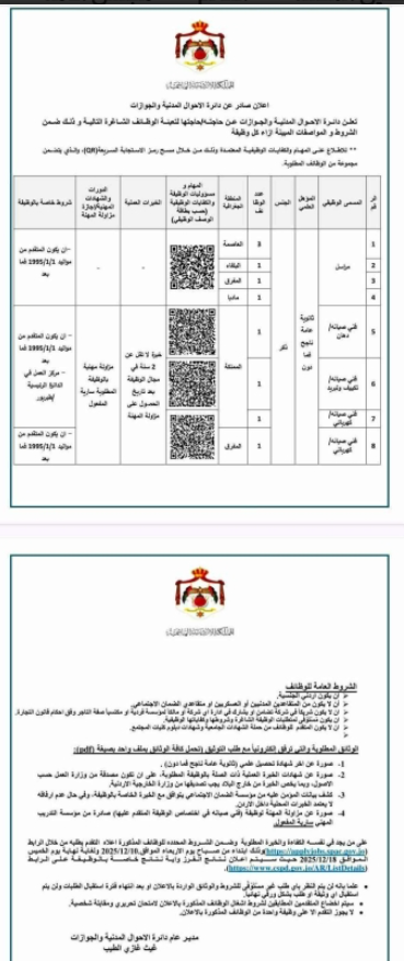 - أعلنت دائرة الأحوال المدنية والجوازات عن حاجتها لتعبئة الوظائف الشاغرة التالية ضمن الشروط والمواصفات التالية :