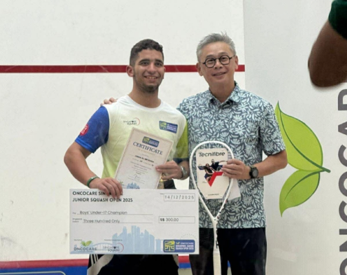 البطاينة يظفر بالميدالية الذهبية في بطولة سنغافورة للسكواش تحت سن 17
