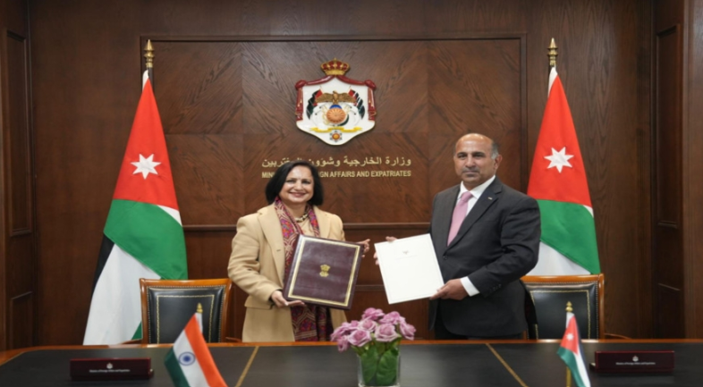 وقّع أمين عام وزارة الخارجية وشؤون المغتربين السفير ضيف الله الفايز ومساعدة وزير الشؤون الخارجية في جمهورية الهند نينا مالهوترا، على هامش زيارة رئيس الوزراء الهندي ناريندرا مودي إلى المملكة، مذكّرة تفاهم بين وزارة المياه والري الأردنية ووزارة الموارد المائية الهندية بشأن التعاون في مجال إدارة وتنمية الموارد المائية، ومذكّرة تفاهم بين وزارة الطاقة والثروة المعدنية الأردنية ووزارة الطاقة الجديدة والمتجدّدة في جمهورية الهند بشأن التعاون في مجال الطاقة المتجددة.