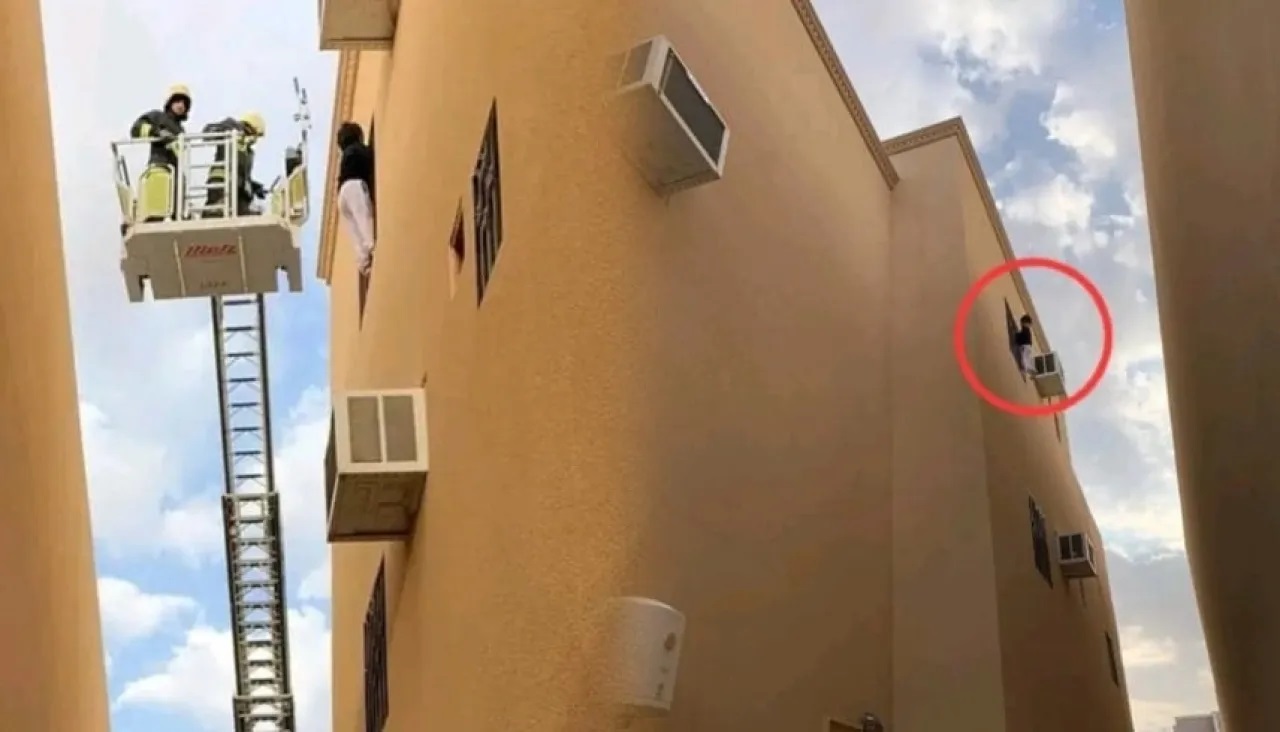 وأكدت الحسابات الرسمية للدفاع المدني السعودي حينها أن فرقهم نجحت في إنقاذ طفل يبلغ من العمر 6 سنوات، كان محتجزاً خارج سياج نافذة المنزل في حي القدس، وظهر وكاد يسقط.