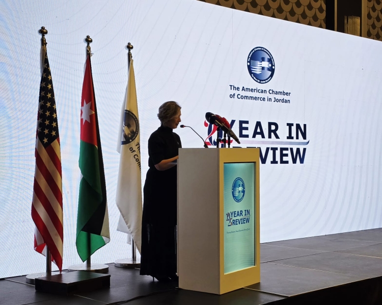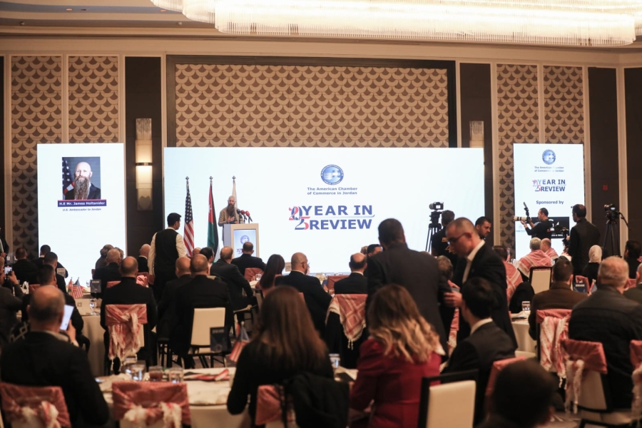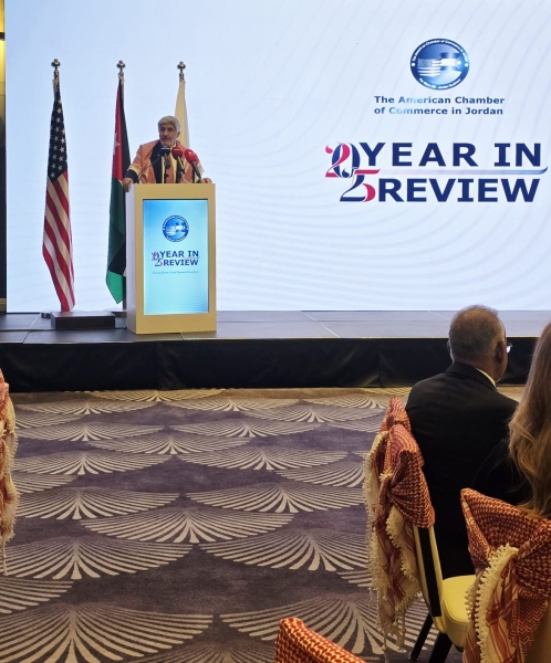 اقامت غرفة التجارة الأمريكية في الأردن حفلها السنوي لاستعراض إنجازات عام ٢٠٢٥ في فندق سانت ريجيس عمّان، تحت رعاية معالي رئيس الوزراء الدكتور جعفر حسان. ومثّل رئيس الوزراء معالي المهندس يعرب القضاه، وزير الصناعة والتجارة والتموين.