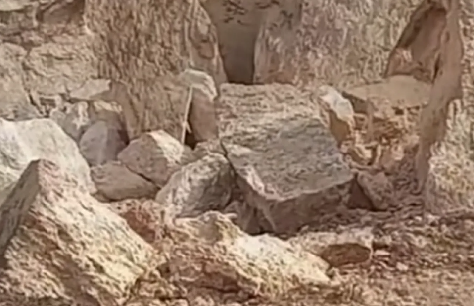 وسقطت الصخور من سفح الجبل اثر الأمطار الغزيرة وفق ما اظهر فيديو عبر مواقع التواصل الاجتماعي.