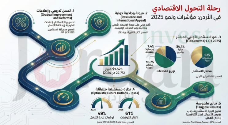 اقتصاد الأردن 2025: "وزارة الاستثمار" تقود تحولاً جذرياً .. نمو التدفقات الأجنبية بنسبة 27.7% وتوقعات أفضل في 2026