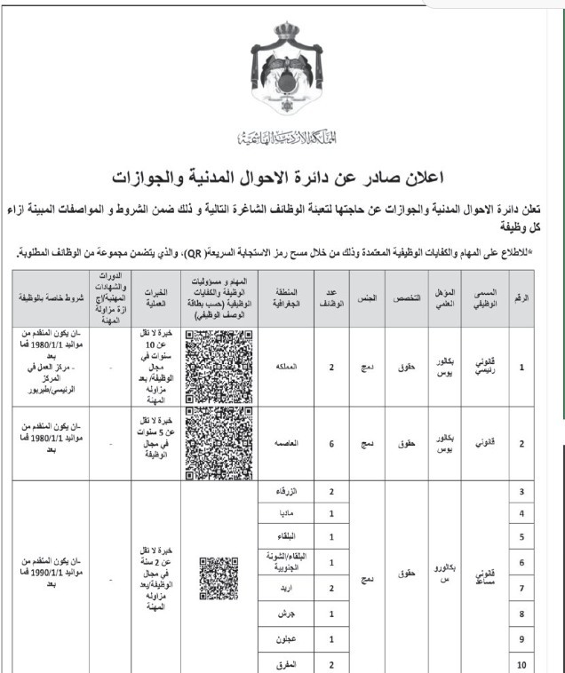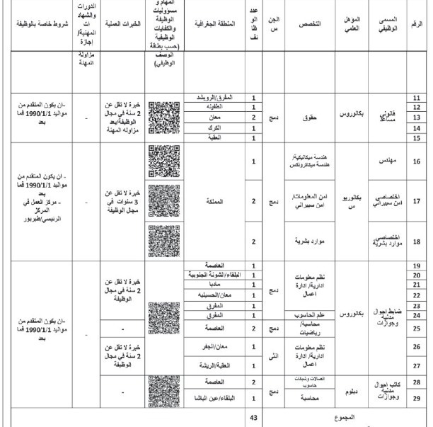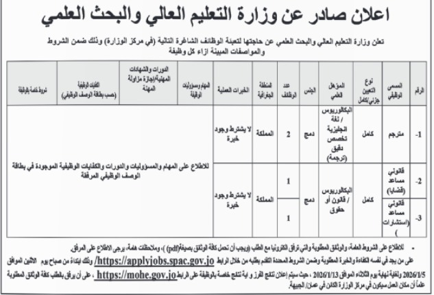 اعلنت دوائر حكومية، اليوم الأحد عن حاجتها لتعبئة وظائف شاغرة.