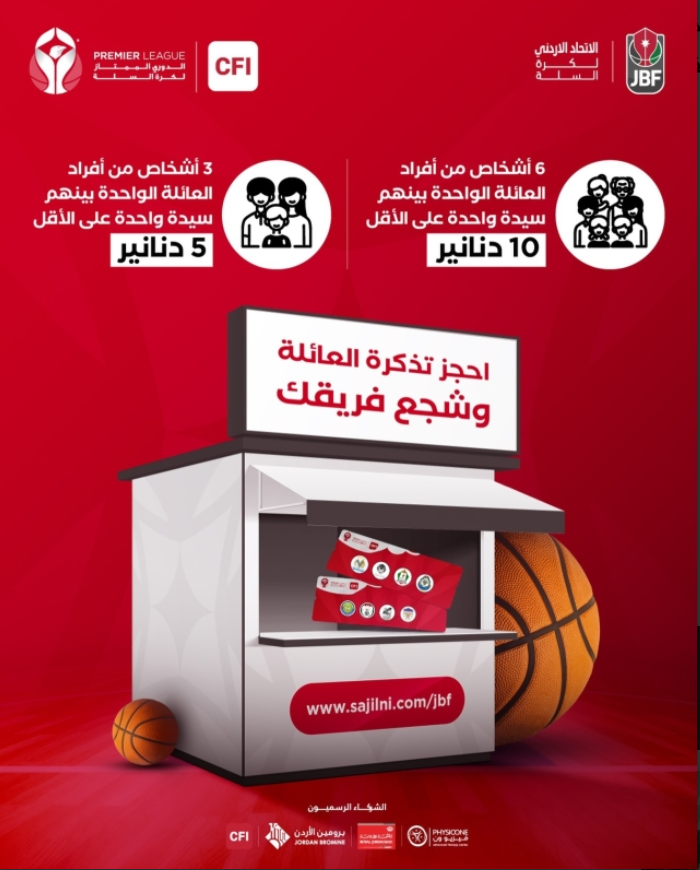 أعلن الاتحاد الأردني لكرة السلة اليوم الأربعاء، عن إطلاق مبادرة "تذكرة العائلة" اعتبارا من مباريات الجولة السابعة من ذهاب المرحلة الأولى لبطولة دوري (CFI) الممتاز لكرة السلة للرجال لموسم 2025، في إطار جهوده الرامية لتعزيز الحضور العائلي وترسيخ ثقافة التشجيع الإيجابي داخل الصالات المغلقة.