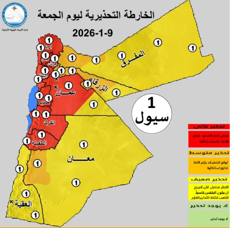 الإدارة المحلية: الكرك والطفيلة ضمن أكثر المناطق تأثرا بالمنخفض المتوقّع