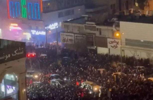 شاهدوا تفحم مبنى التلفزيون الإيراني بعد ان احرقه محتجون