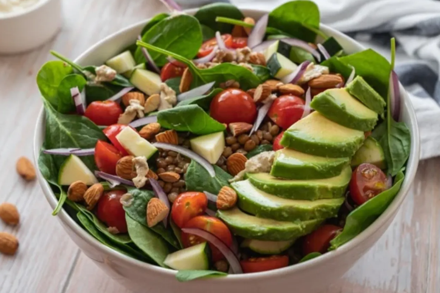 ويمكن زيادة الدهون الصحية في السلطة بإضافة الأفوكادو والمكسرات والبذور، وهي دهون ستعزز صحة القلب بدورها.