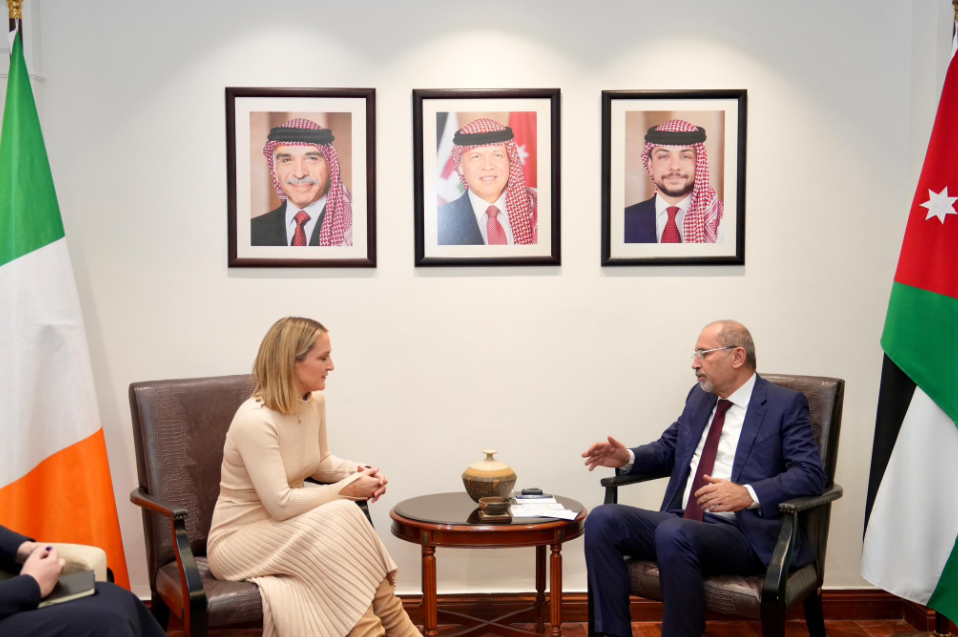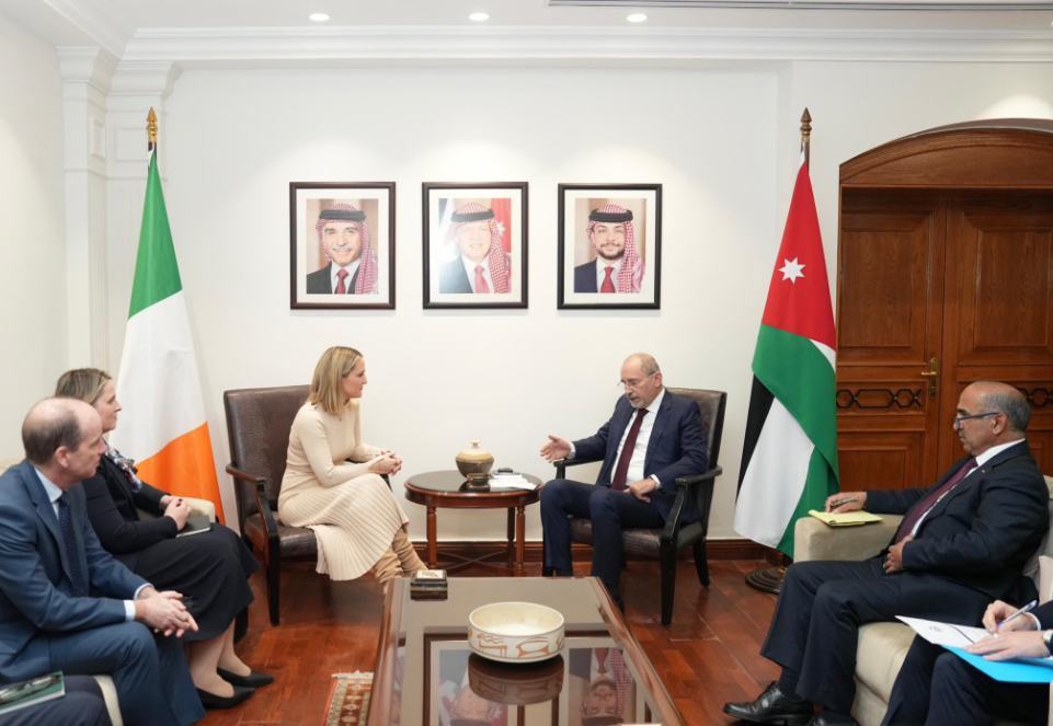 أجرى نائب رئيس الوزراء وزير الخارجية وشؤون المغتربين أيمن الصفدي، الأربعاء، مباحثات موسّعة مع وزيرة الخارجية والتجارة والدفاع الإيرلندية هيلين ماكنتي، في مقر الوزارة.