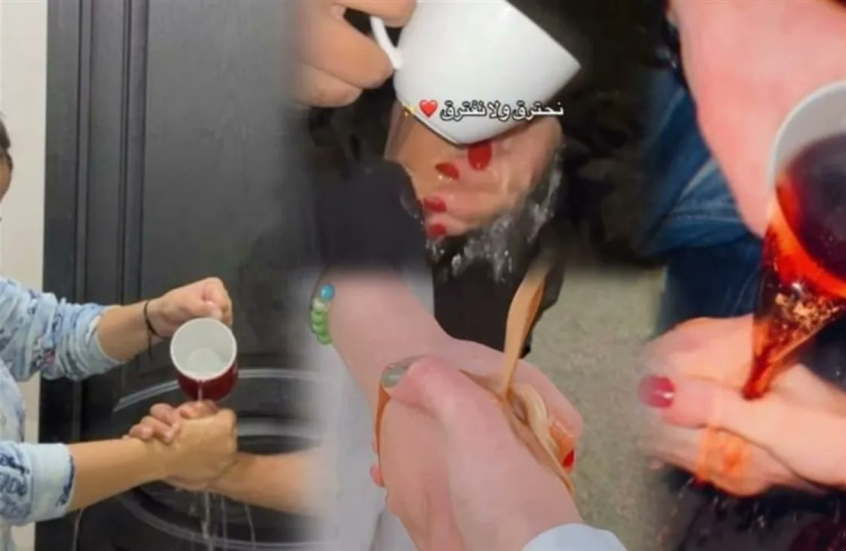 ويقوم التحدي على فكرة غريبة: حيث يمسك شخصان — غالبًا ما يكونان في علاقة عاطفية — بكوب واحد معا، بينما يُسكب فيهما ماء مغلي أو سوائل ساخنة في آن واحد، في مشهد يدّعي المشاركون فيه أنه "اختبار حقيقي لقوة التحمل وعمق الروابط العاطفية".