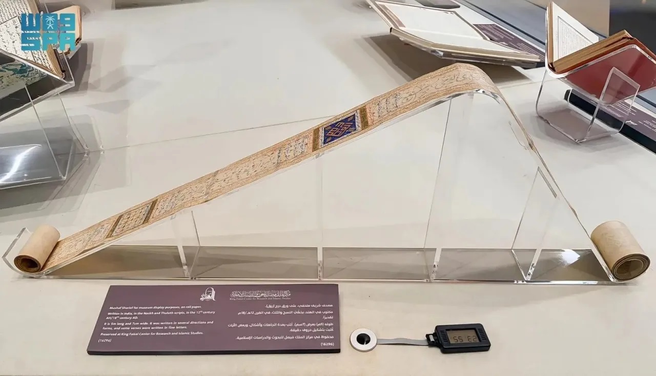 يعرض متحف القرآن الكريم في حي حراء الثقافي بمكة المكرمة مصحفًا شريفًا يُعد من النفائس القرآنية النادرة التي تجسّد عناية المسلمين بكتاب الله عبر العصور، حيث كُتب على ورق الدرج «الرول»، وأُنجز في الهند خلال القرن الثاني عشر الهجري / الثامن عشر الميلادي تقريبًا.