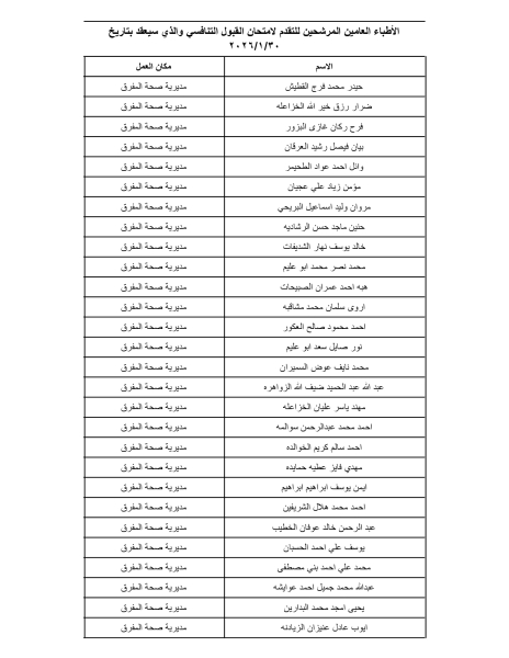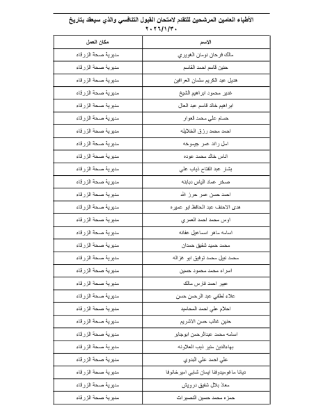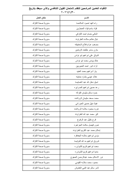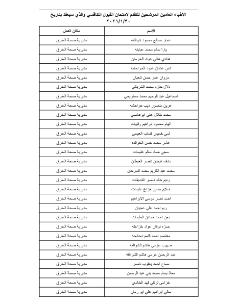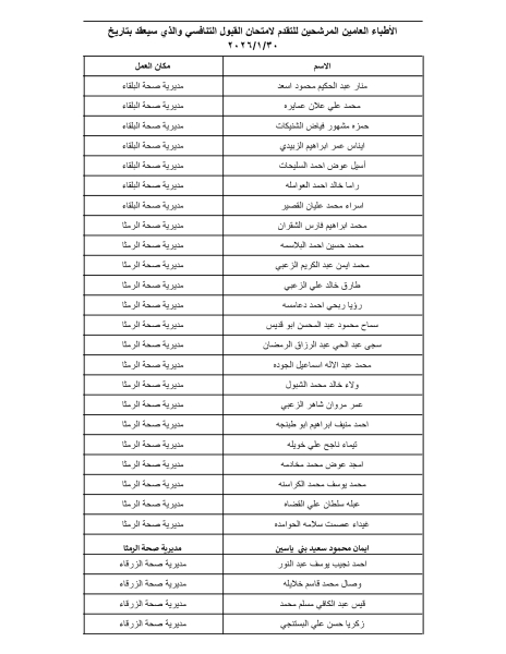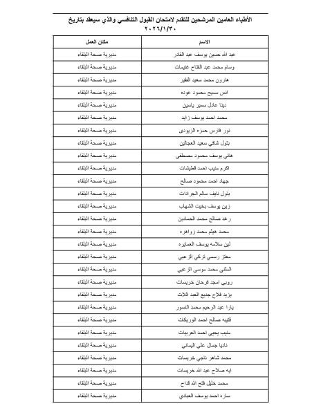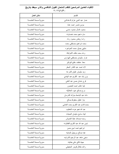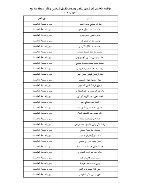 دعت وزارة الصحة الأطباء المدرجين أسماؤهم إلى تقديم امتحان القبول لبرنامج الإقامة في المواعيد والأماكن المحددة.