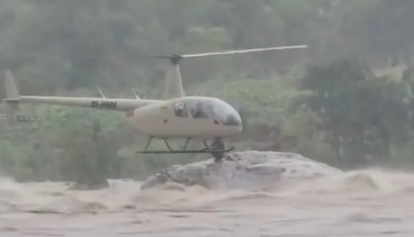 وأظهرت لقطات مصورة لحظة اقتراب المروحية على ارتفاع منخفض من مياه نهر فوندوزي المتدفقة بعنف، وسط رياح عاتية، بينما كان الطيار يكافح للحفاظ على توازن الطائرة في ظروف جوية بالغة الصعوبة، وفقاً لصحيفة "ذا صن" البريطانية.