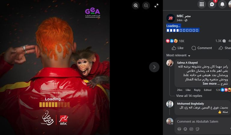 أثارت قناة MBC مصر حالة واسعة من الجدل والتفاعل، بعد نشرها بوستًا تشويقيًا غامضًا يُلمّح إلى برنامج المقالب الجديد الذي يقدمه رامز جلال في موسم رمضان 2026، دون الكشف عن الاسم أو تفاصيل الفكرة، مكتفية بعناصر بصرية لافتة، مثملة في ظهر رامز وقرد، وكلمة واحدة: "Loading…".