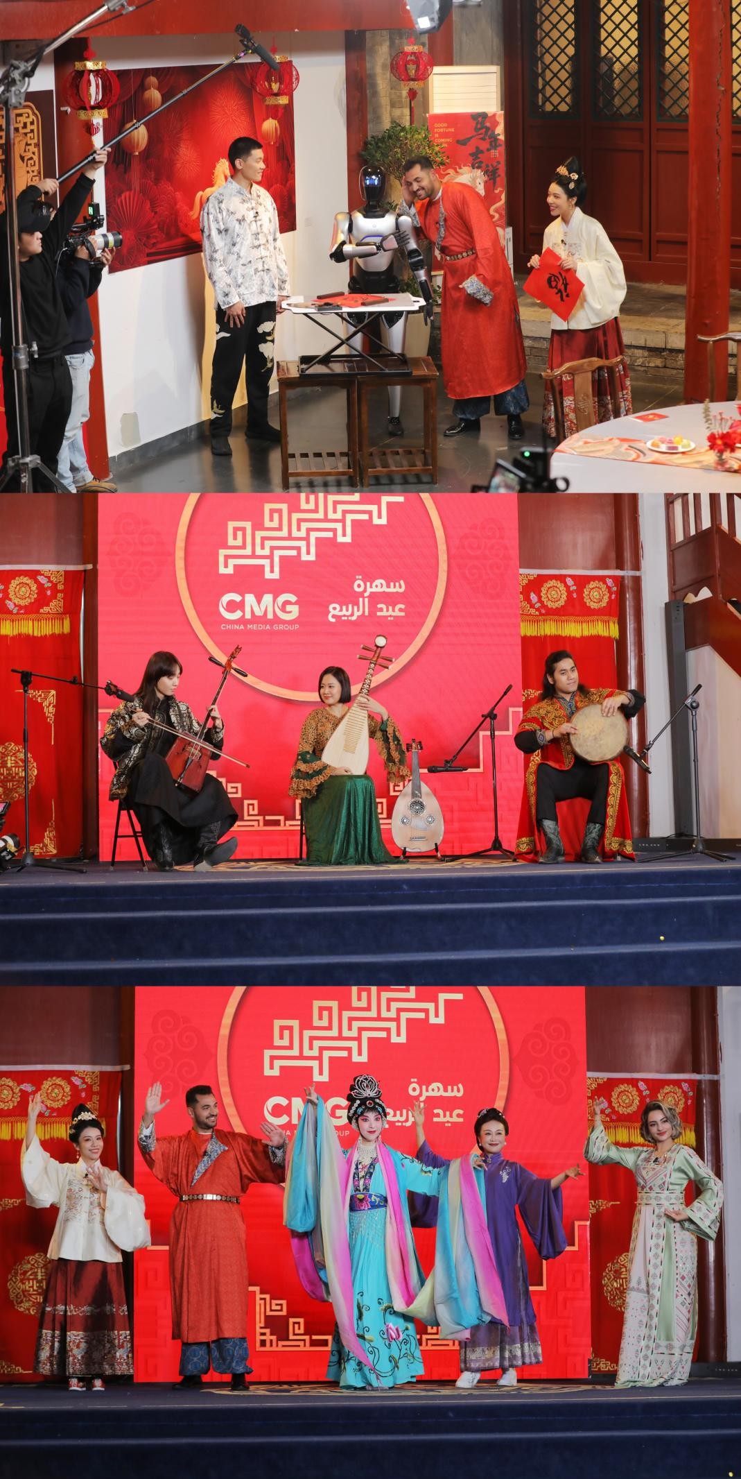 وعلى صعيد الانتشار الدولي، أفيد بأن القناة العربية التابعة لمجموعة الصين للإعلام ستجرب في هذا العام وللمرة الأولى البث المباشر لسهرة عيد الربيع بنمط «التفاعل المزدوج بين موقعين»، بهدف تقديم تجربة احتفالية متكاملة ومرافِقة طوال فترة العيد. وإلى جانب موقع البث الرئيسي في الاستوديو، سيتم إعداد موقع ثان يشارك فيه ضيوف من الأردن ومصر ولبنان في جلسة حوارية ودية مع مقدمين صينيين. كما سيشهد الموقع عرضا حيا لمقتطفات من أوبرا بكين «الحورية تنثر الأزهار» إلى جانب عزف مشترك بين آلة العود العربية وآلة البيبا الصينية التقليديتين، لتشكيل لحظات سمعية وبصرية عابرة للثقافات. وفي الوقت ذاته، سيظهر الروبوت الإنساني وروبوت الباندا للمرة الأولى على مسرح السهرة الخاصة للقناة العربية، جنبا إلى جنب مع فنون التراث الثقافي غير المادي الصيني، مثل فن المينا الصيني (فا لانغ) وفن قص الورق من محافظة يويشيان إضافة إلى فن الخط العربي، ما يحقق اندماجا عضويا بين التكنولوجيا والثقافة، ويعزز فاعلية انتشار البرنامج.