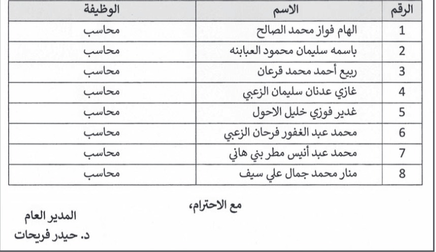 تدعو دائرة اإحصاءات العامة اليوم الاثنين التالية اسماؤهم لاجراء المقابلات الشخصية.