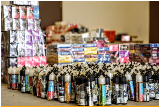 حيث أن المضبوطات اشتملت على 6500 عبوة جوس ونصف طن معسل مشكل وتبغ 20 كيلو غير صالح للاستهلاك 2000 كروز دخان وبودات للسجائر الإلكترونية عدد 280 وبضائع مقلدة ممنوعة متنوعة.
