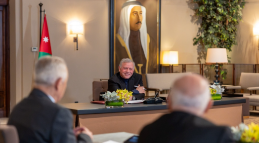 وحضر اللقاء رئيس الديوان الملكي الهاشمي يوسف حسن العيسوي، ومدير مكتب جلالة الملك، علاء البطاينة.