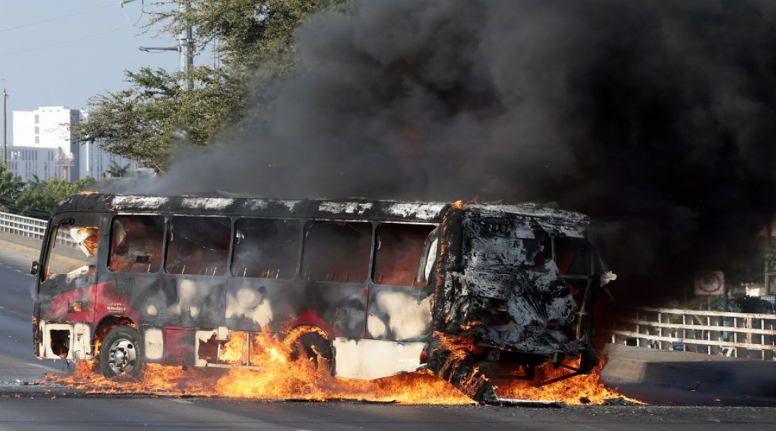 وقطع مسلحون محاور طرق عدة بسيارات وشاحنات مشتعلة في ولاية خاليسكو حيث شوهدت ليلا بقايا مركبات متفحمة وأخرى مشتعلة.