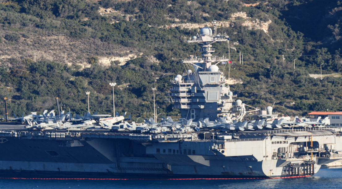 وصلت حاملة الطائرات الأميركية الكبرى في العالم "جيرالد آر. فورد" إلى القاعدة البحرية الأميركية في خليج سودا بجزيرة كريت اليونانية، في طريقها للانضمام إلى حشد عسكري واسع للولايات المتحدة في الشرق الأوسط.