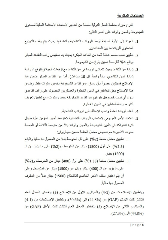 وأكدت المؤسسة أن نتائج الدراسة الحالية تُظهر الحاجة إلى إجراء تعديلات تشريعية على قانون الضمان الاجتماعي، بما يضمن ترحيل جميع نقاط التعادل إلى مدد زمنية أطول، وتعزيز ديمومة النظام التأميني وحماية حقوق الأجيال القادمة.