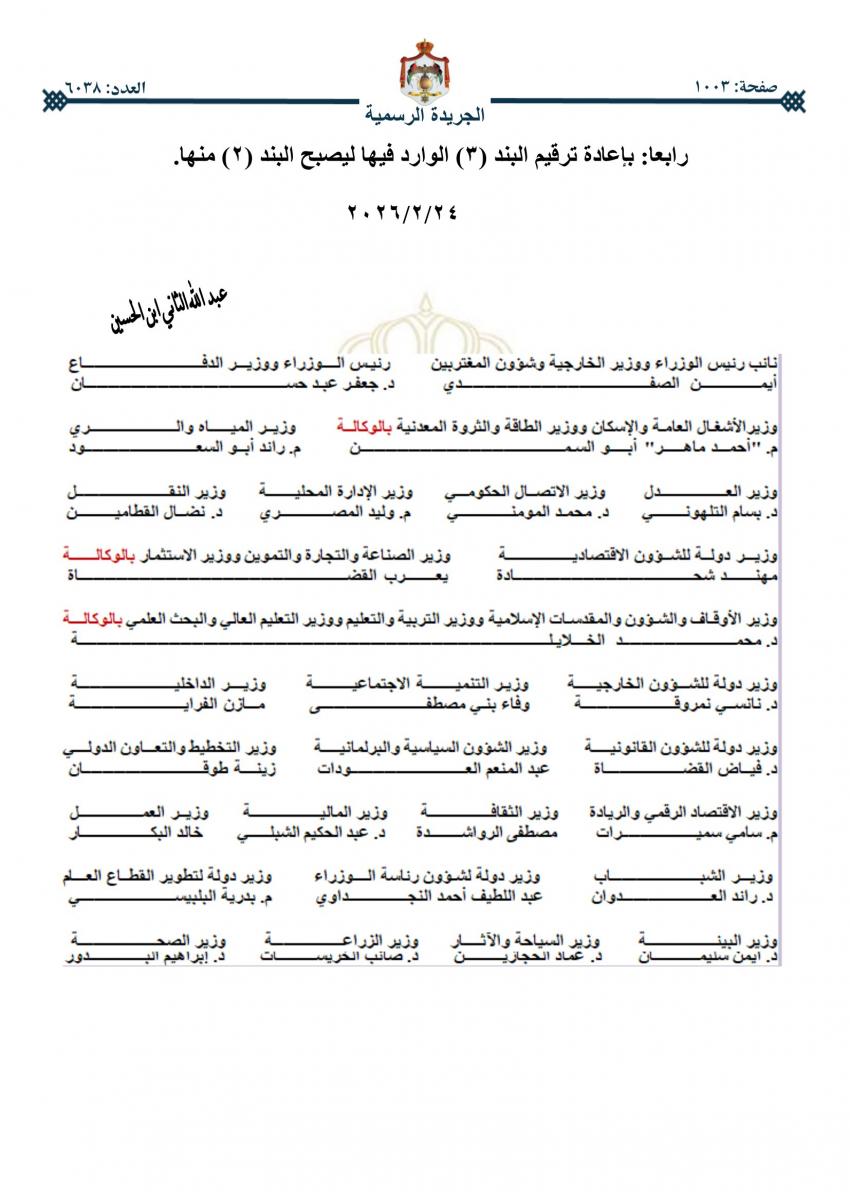 صدر في عدد الجريدة الرسمية اليوم الخميس النظام المعدل لنظام كادر ضباط القوات المسلحة الأردنية، والنظام المعدل لنظام كادر أفراد القوات المسلحة الأردنية.