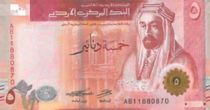 أكد البنك المركزي الأردني أنه تم طرح أوراق نقدية من فئة الخمسة دنانير للتداول خلال فترة العيد تحمل تواقيع وزير المالية الحالي، الدكتور عبد الحكيم الشبلي، ومحافظ البنك المركزي الحالي، الدكتور عادل الشركس، وهي أوراق نقدية قانونية تم طرحها للتداول دون أي قيود، وذلك جنباً إلى جنب مع الأوراق النقدية الصادرة سابقاً من نفس الفئة.