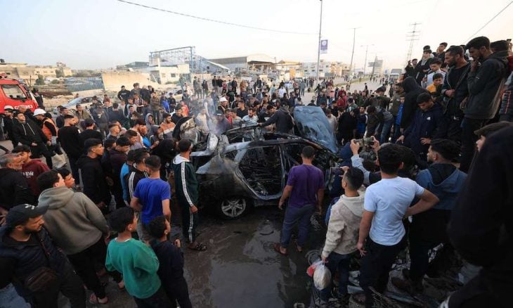 المركبة التي قصفها طيران الاحتلال قرب مدخل مخيم "المغازي" وسط قطاع غزة، ما أدى لارتقاء شهيد ووقوع عدد من الإصابات. pic.twitter.com/lCtppLuS7F