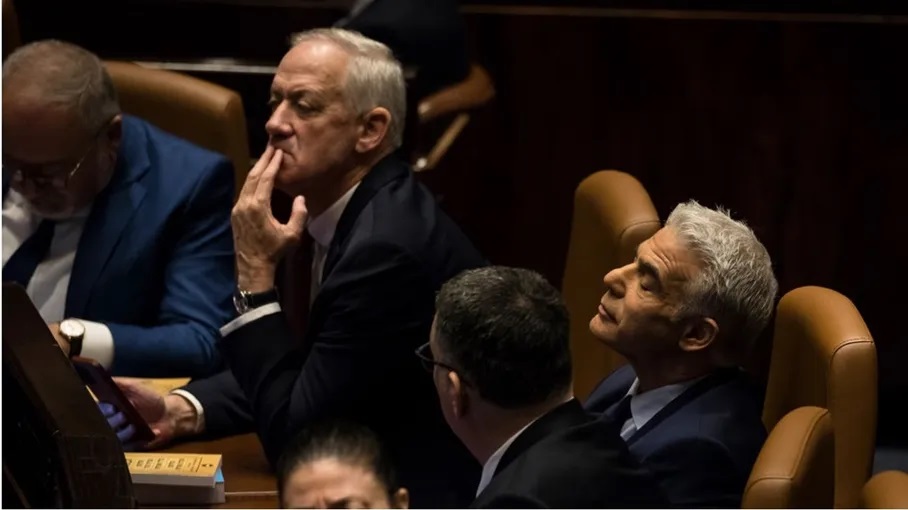 وانتقل الكاتب الى الحديث عن "جناح وسط اليسار، ويظهر فيه الشريكان السابقان، بيني غانتس وغادي آيزنكوت، وهما يتنافسان على أصوات معسكر الدولة/أزرق- أبيض، الذي أسسه غانتس، وقاده، لكنه بعد أسبوع من هجوم حماس في السابع من أكتوبر، أعطته استطلاعات الرأي 38 مقعدًا، ومع مرور الوقت، تغير الوضع في غير صالحه، وعندما تم تقويض موقفه، طالب آيزنكوت فعلياً بقيادة الحزب، لكن غانتس رفض، مما دفع لاستقالة آيزنكوت، وهنا حدث انقلاب مفاجئ للجميع".