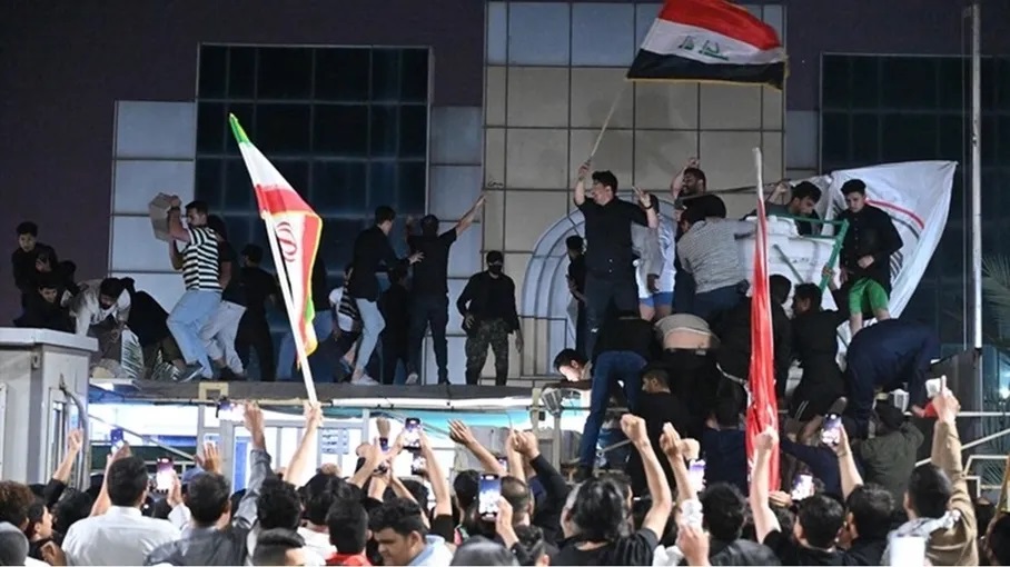ذكرت وسائل إعلام عراقية، أن عشرات المتظاهرين اقتحموا القنصلية الكويتية بمحافظة البصرة جنوبي البلاد، وأنزلوا علمها احتجاجا على "قصف صاروخي".