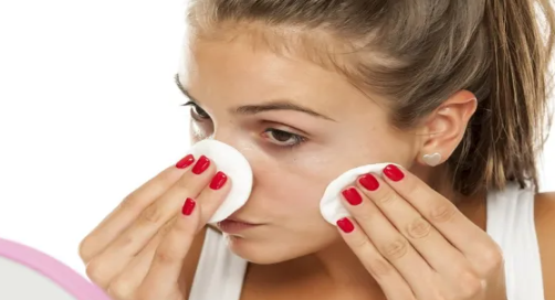- المسح بلطف للأسفل برفق دون فرك، أو حركات عنيفة؛ لتجنب تهيج البشرة.
