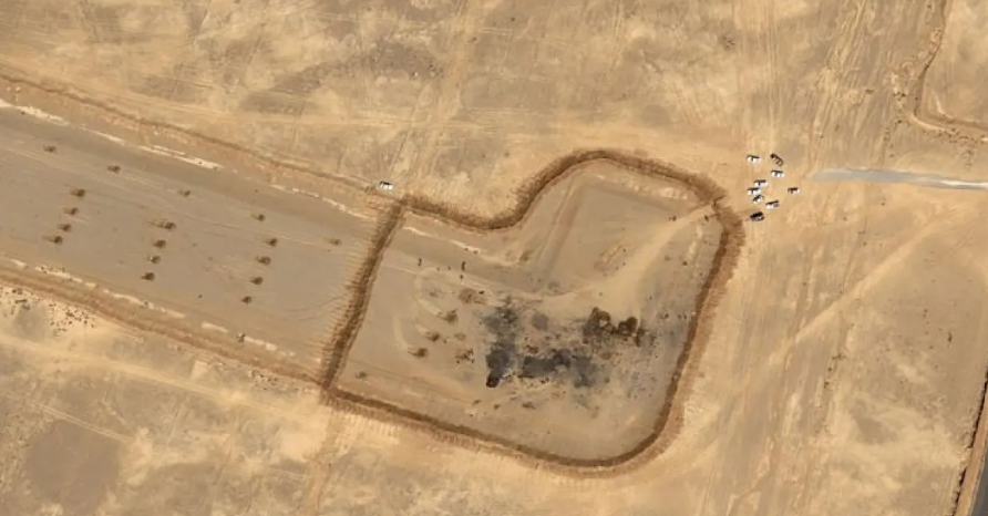 وتُظهر الصورة، التي التُقطت في 10 أبريل/ نيسان الحالي، علامات سوداء كبيرة في الطرف الشرقي من المدرج البالغ طوله 1200 متر، يُرجّح أنها ناتجة عن احتراق الطائرات، كما تظهر عدة سيارات قرب نهاية المدرج.