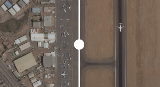 وتظهر الصور الفضائية العالية الدقة عمليات تنظيف واسعة للمدارج، وإزالة لهياكل الطائرات المتفحمة، وتأهيل صالات الركاب.