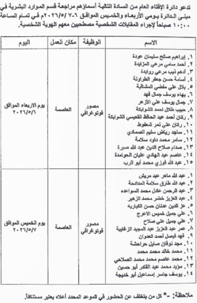 كما دعت دائرة الإفتاء العام، التالية أسماؤهم لإجراء المقابلات الشخصية.
