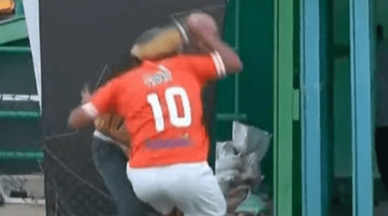 وظهر نوح محتضنا اللاعب محاولا التخفيف عنه ببعض الكلمات، إلا أن اللاعب دفعه بعيدا وضربه.