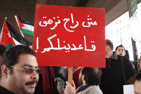 ورفع المتظاهرون الذين نصبوا خياما للمبيت فيها لافتات كتب عليها 'الشعب يريد برلمانا جديدا'، 'بالروح بالدم نفديك يا أردن'، 'بالروح بالدم نفديك يا أبو حسين' ، 'الشعب يريد الاصلاح ' و 'لا للسماسرة والتجار' و' نريد اجتثاث الفساد' و 'نريد العيش بكرامة وحرية'.