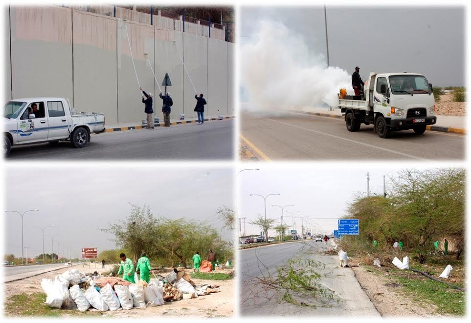 وتشمل الأعمال إزالة الأكشاك المخالفة والتعديات على الممتلكات العامة ومعالجة المكاره البيئية ومكافحة ناقلات الأمراض وتنفيذ أعمال زراعة وتجميل وتأهيل وصيانة للجزر الوسطية والأطاريف والانارة ومعالجة كل ما من شأنه تشويه المظهر الحضاري والجمالي للمنطقة .