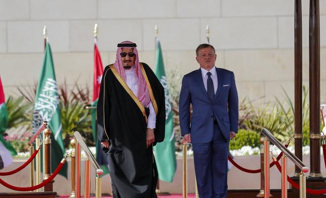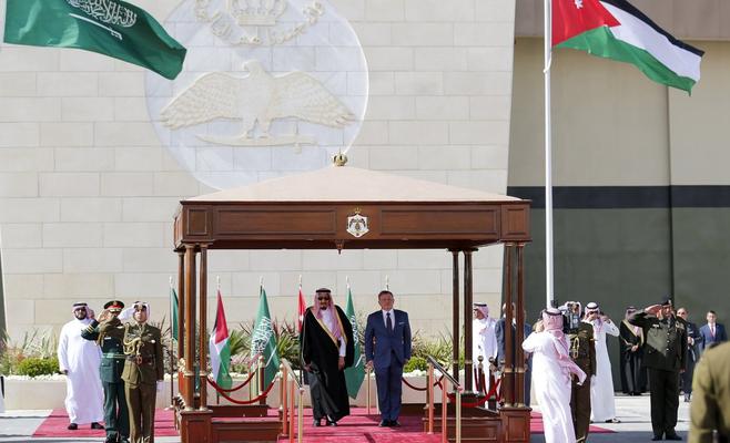 استقبل جلالة الملك عبدالله الثاني، أخيه خادم الحرمين الشريفين الملك سلمان بن عبدالعزيز آل سعود، ملك المملكة العربية السعودية الشقيقة، الذي وصل إلى عمان اليوم الاثنين في زيارة رسمية للمملكة، تجسد العلاقات الأخوية التاريخية التي تجمع المملكتين وقيادتيهما.
