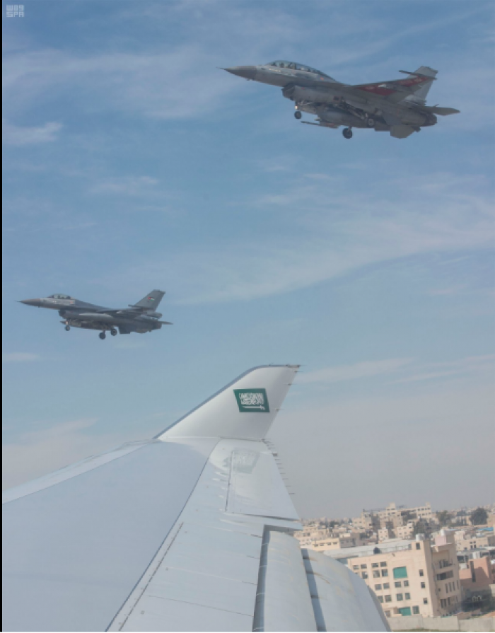 وكانت قد رافقت مجموعة من طائرات سلاح الجو الملكي الأردني طائرة الملك سلمان فور وصولها الى سماء المملكة .