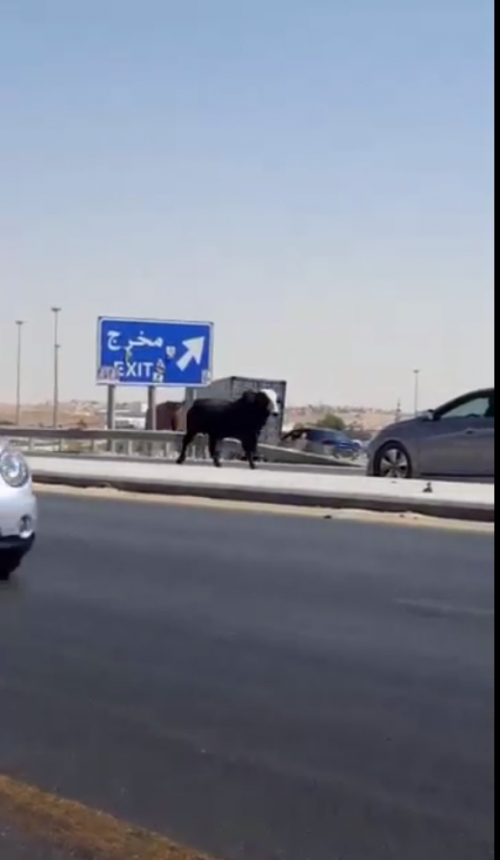 خاص - اثارت عجول هاربة مساء اليوم الجمعة ، الذعر في قلوب مواطنين على جسر المية بمنطقة سحاب ، واربكت الحركة المرورية.